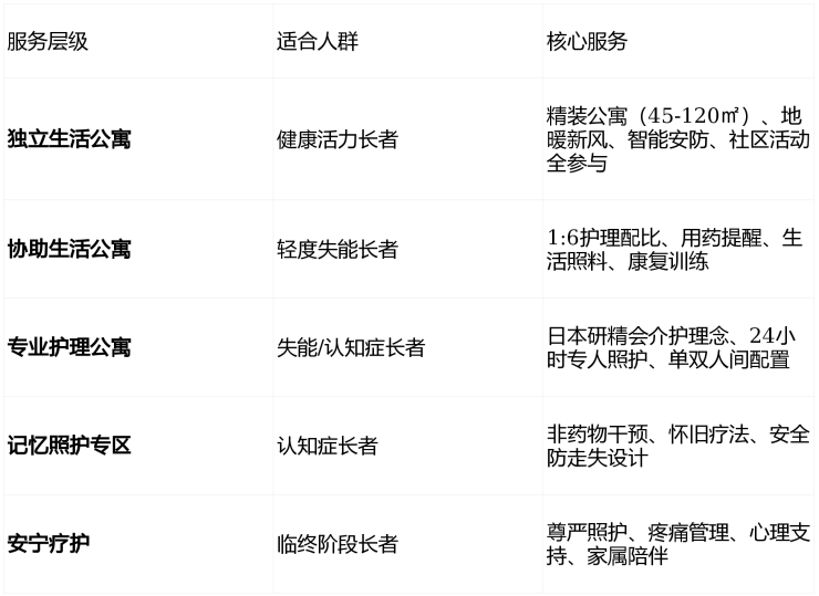 🏥 三、CCRC全周期照护:从独立生活到安宁疗护的终身承诺