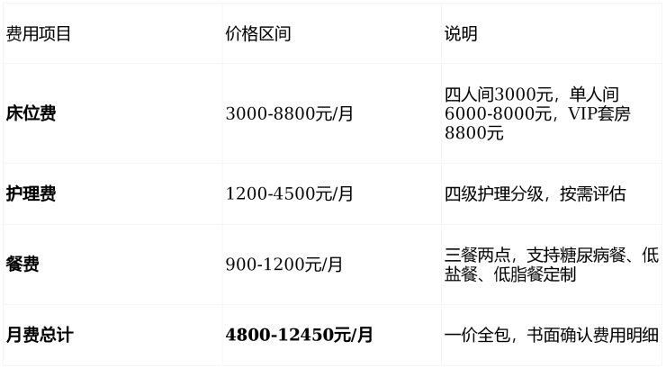 茸奕护理院采用"床位费+护理费+餐费"模块化收费,无隐形消费: