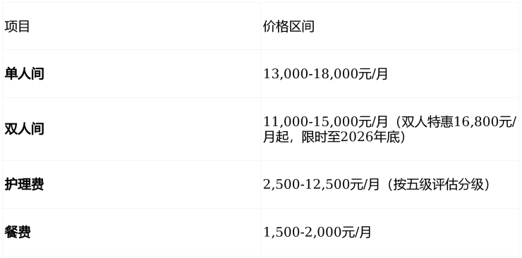 🏆透明收费:11,000元/月起,支持长护险最高报销70%