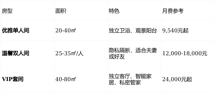 月费总计:9,540-26,000元/月(根据房型、护理等级、个性化需求)
