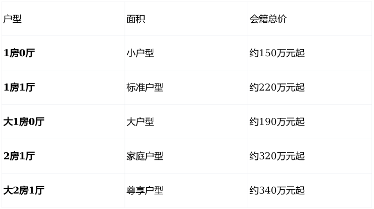 永久会籍(一次性投入,长期使用权)
