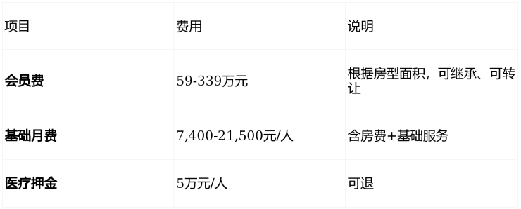 自理长者:约9,500-11,000元/月(含房费+餐饮+基础服务+智慧健康监测+1500场社区活动+三甲医疗绿通)