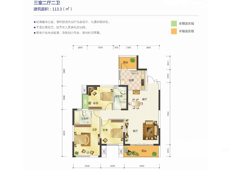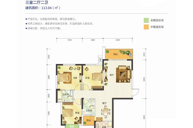 3室2厅2卫-三室两厅两卫 113.04㎡
