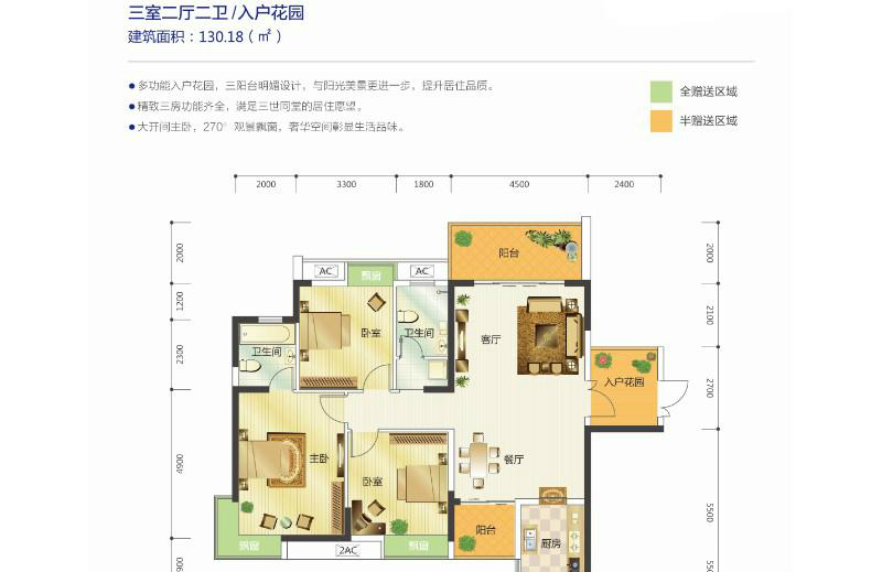 3室2厅2卫-三室二厅二卫入户花园130.18㎡