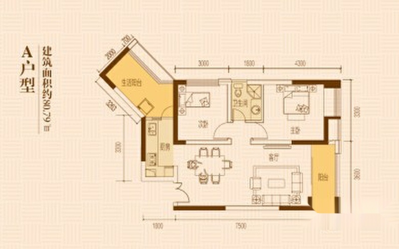 2室2厅1卫-户型A、两室两厅一厨一卫