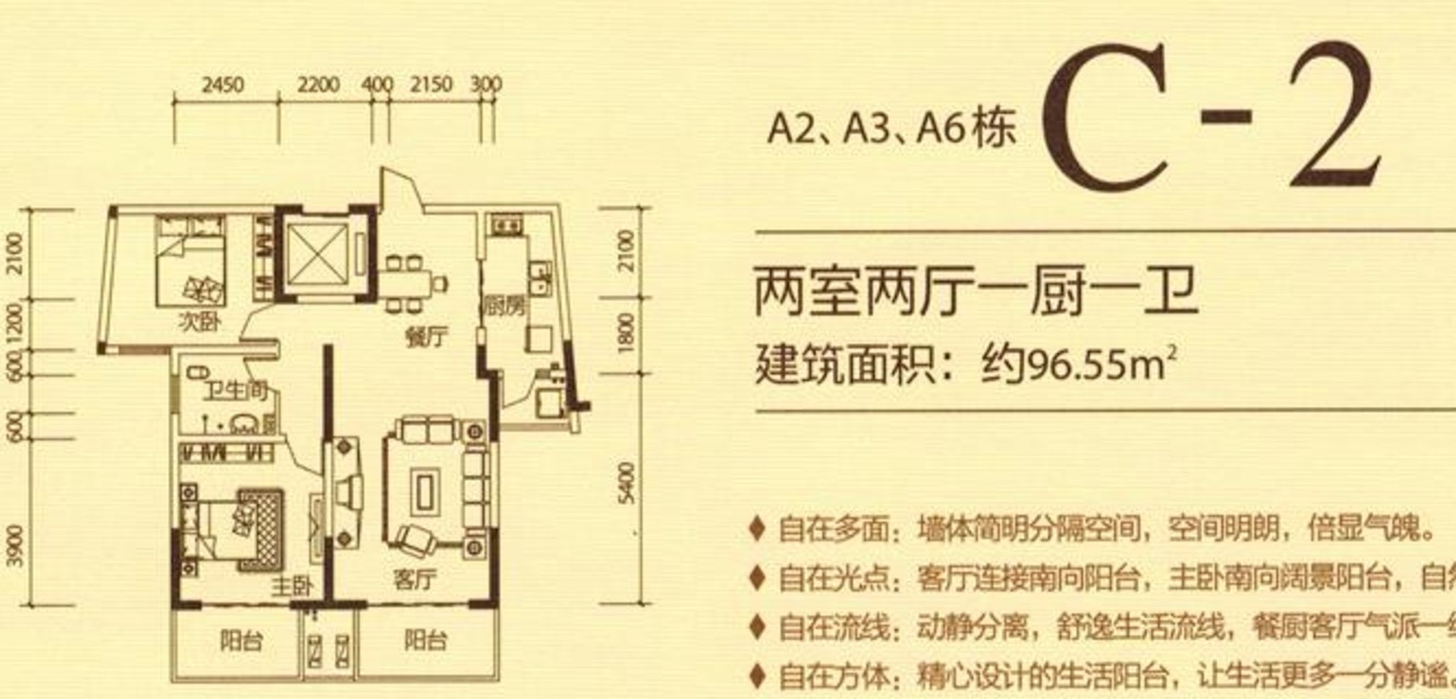 2室2厅1卫-A2栋C-2户型