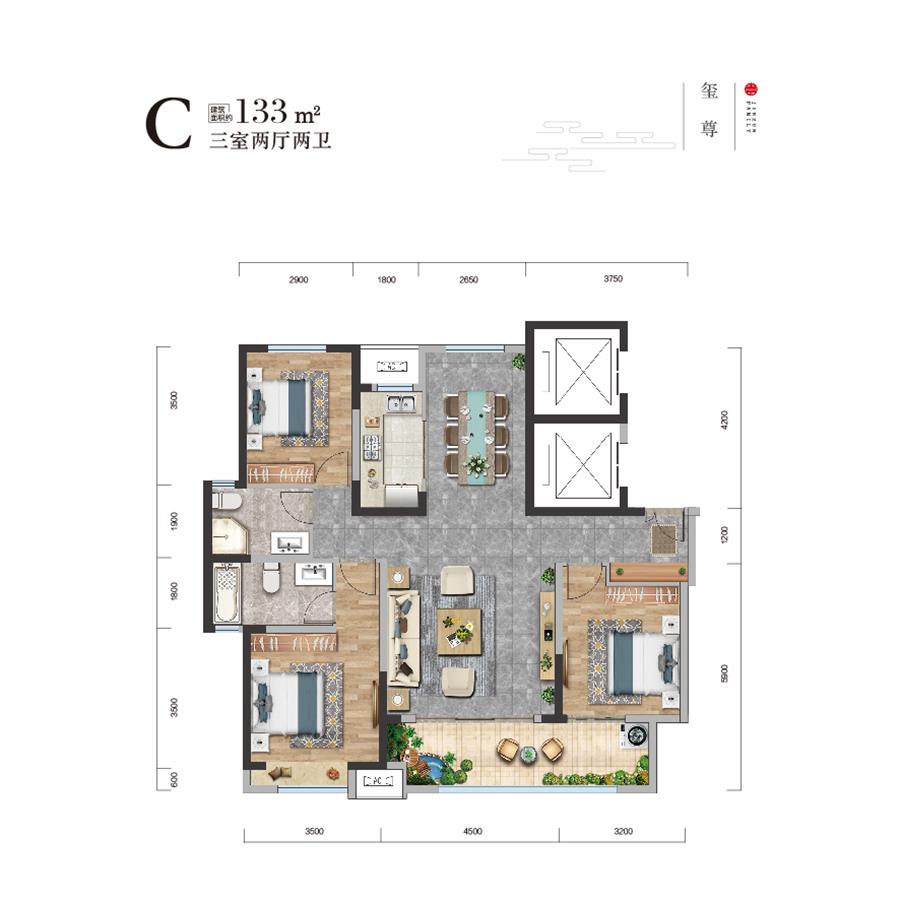 居然之家·金尊世家新推129㎡3室、133㎡3室、142㎡4室、158㎡4室、185㎡4室的住宅户型。