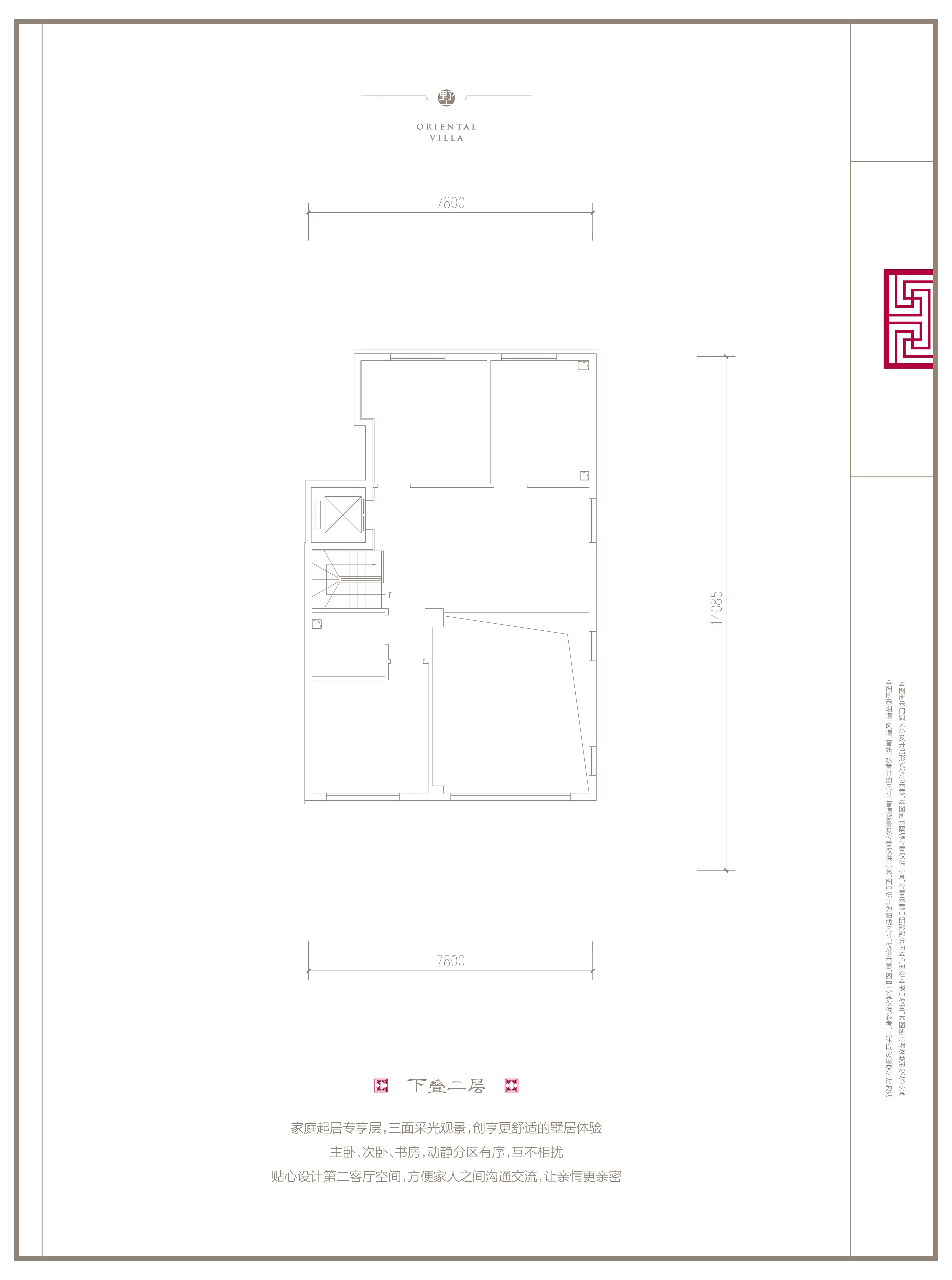 阔境尺度 大宅范本:一席墅居,是对品质生活态度的一种选择,无论是奢阔体验、礼序观或审美诉求,均将高净值人群骨子里的真我需求展现。匠筑叠拼户型,私家电梯入户,灵动空间,采光充足,为不同年龄段人营造专属生活空间,尽显朗阔尺度和大宅气派,为城市塔尖创造专属的视野和天地。