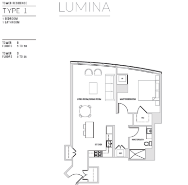 设计和装修风格以现代式简约奢华风格为基调,非常受当地富豪喜爱。由美国艾凯特托尼克建筑事务所的世界知名建筑大师 Bernardo Fort-Brescia设计,与Heller Manus建筑事务所联合打造。LUMINA突出的建筑线条与角度优质诠释了旧金山的优雅、现代感与活力。