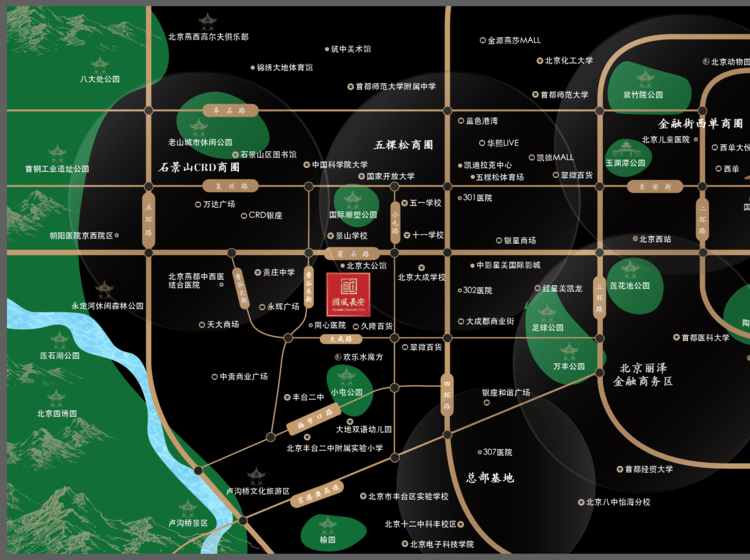 国风长安•云棠——国风长安叠 院新作, 择 址长安街西四环,复刻醇王府规制,毗邻金融街 、丽泽商务区 , 两大金融 中心 , 项目周边8大商圈环绕,;5公里内三甲医院聚集 ,京西优质学府林立 ,尽享内城丰 盛配套 ; 以 坊巷 格局重 塑 邻里文化, 传承北京院落文化 ,为当代士族精英打造的国风 府 园