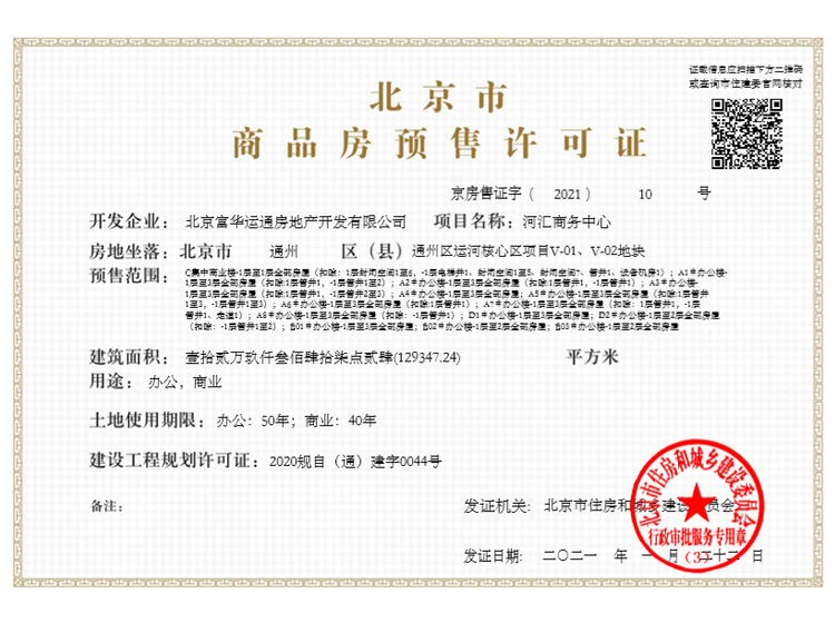 - 京房售证字(2021)10号 详情发证时间 2021-01-22绑定楼栋C集中商业楼-1层至1层全部房屋(扣除:1层封闭空间1至6,-1层电梯井1、封闭空间1至5、封闭空间7、管井1、设备机房1);A1#办公楼-1层至3层全部房屋(扣除:1层管井1,-1层管井1至2);A2#办公楼-1层至3层全部房屋(扣除:1层管井1,-1层管井1);A3#办公楼-1层至3层全部房屋(扣除:1层管井1,-1层管井2至3);A4#办公楼-1层至3层全部房屋;A5#办公楼-1层至3层全部证件照片
