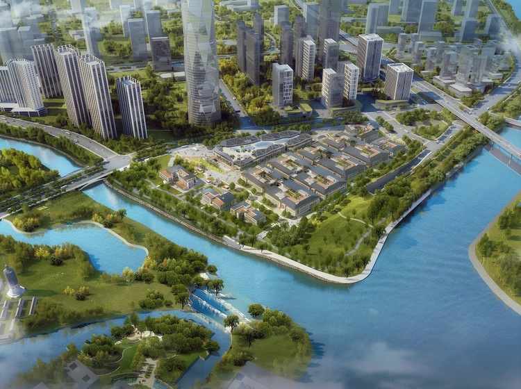 财富港项目位于五大生态水系交汇之处,西海子公园、运河文化广场、月亮河公园、运河奥体公园几大公园给区域带来近50%的绿化率。