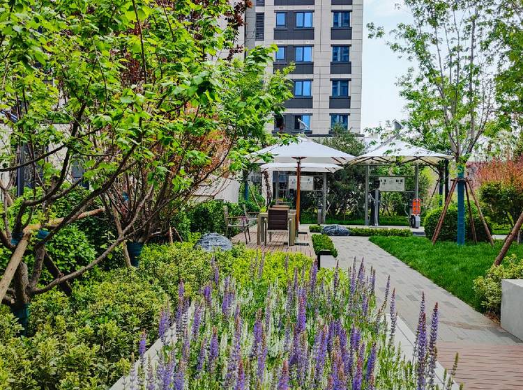 项目位于北京市朝阳区东四环外,距7号线焦化厂地铁站直线距离350米,东距东五环1公里,北距京哈高速1.5公里,南距京津高速1.5公里、距京沪高速4.5公里。位于四条城市快速路及国家高速公路之间;步行圈内有多处市政公共交通站点。地块南侧为规划绿地,北侧为规划中学及小学。项目为北京市排名前列批高标准商品住宅项目,整合全装配式、超低能耗、绿色、健康、宜居五大技术体系于一身,旨在打造高新技术、宜居、绿色的商品房项目。地块内包含商品住宅、幼儿园和社区居民配套。 项目设计尊重环境文脉,充分考虑周边建筑肌理与朝向特征,规划7栋小高层商品房住宅,形成围合空间。园区采取封闭式管理、人车分流。