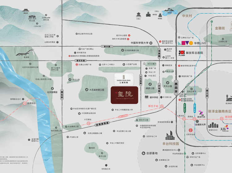 项目距四环约2.7公里,向北连接了中关村板块、亚奥板块;向南连接中关村科技园等核心地段;周边横向的莲石路、梅市口路、大成路以及纵向的小屯路、张仪村路作为城市主干道,可快速通往城市各个区域