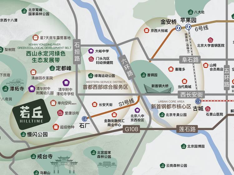 若丘位于北京西山墅区,森林覆盖率高达98.5%,千年文脉,自然延绵。畅达五棵松、万柳、丽泽、金融街、总部基地等商圈,主城繁华与山谷生活无缝衔接。周边餐饮、医疗、公园等配套完备,被誉为山谷三里屯。在推99-138㎡低密洋房,总价约390万起。