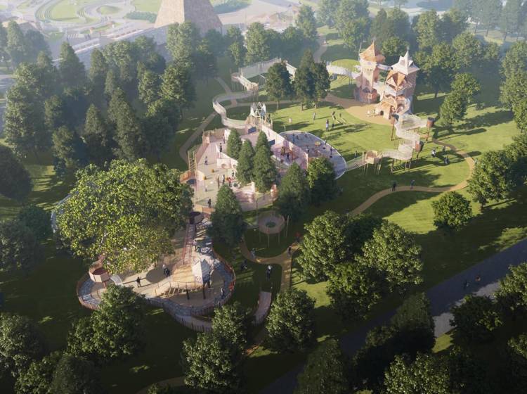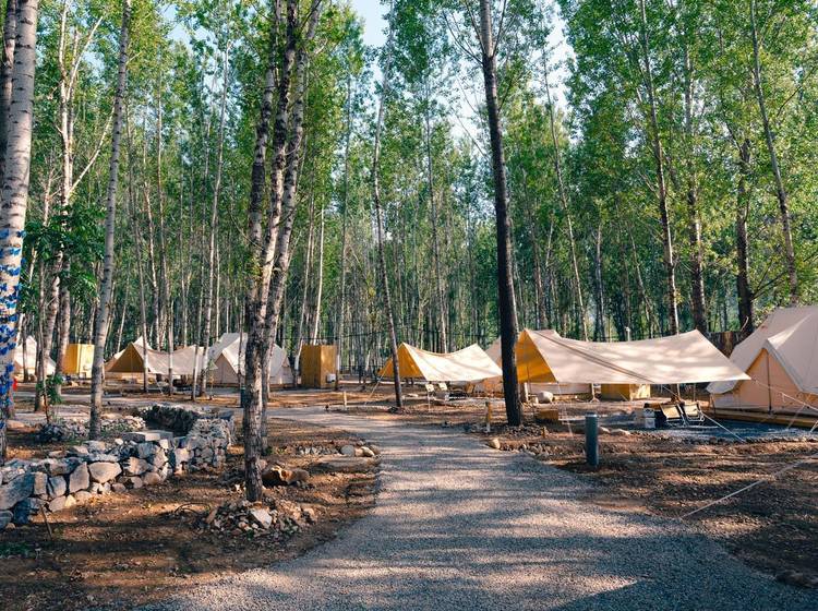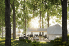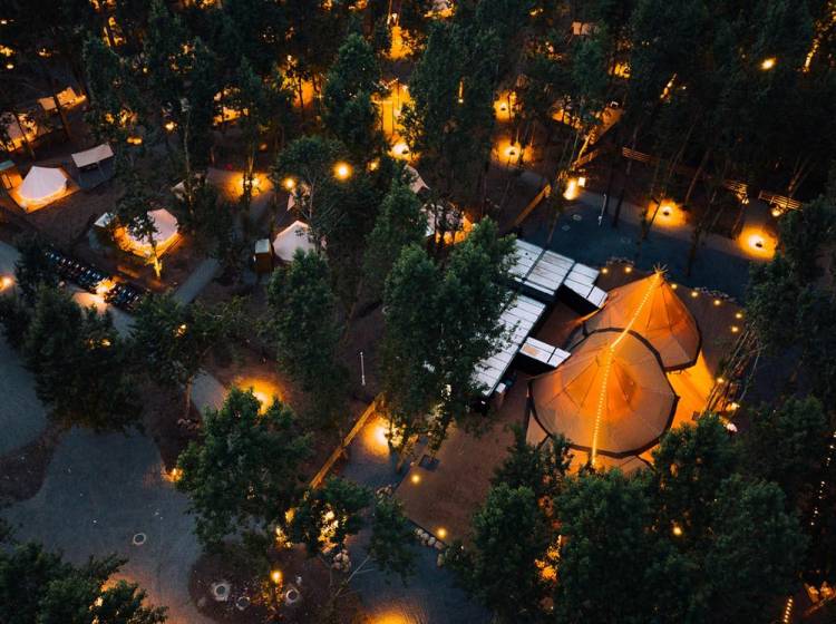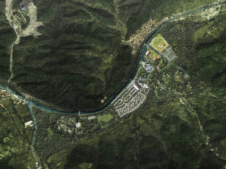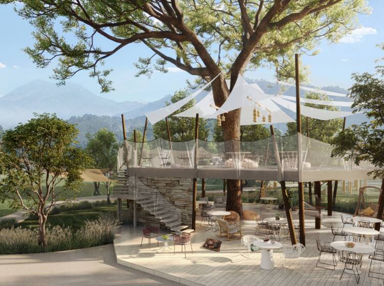 幼儿园、中国电建康复医院、温泉酒店、青普银河营地、探索天地、萌宠农庄、彩虹牧场、星星俱乐部、魔法部落、食野山房、隆兴小馆、第一社区食堂、六道锅餐厅、树屋餐厅、溪地创意中心、银河酒吧、零碳健身房、无界泳池、天书阁、岚山民宿、山野市集