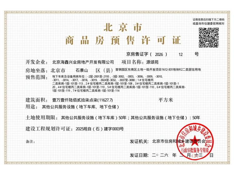 - 京房售证字(2026)12号 详情发证时间 2026-02-13绑定楼栋