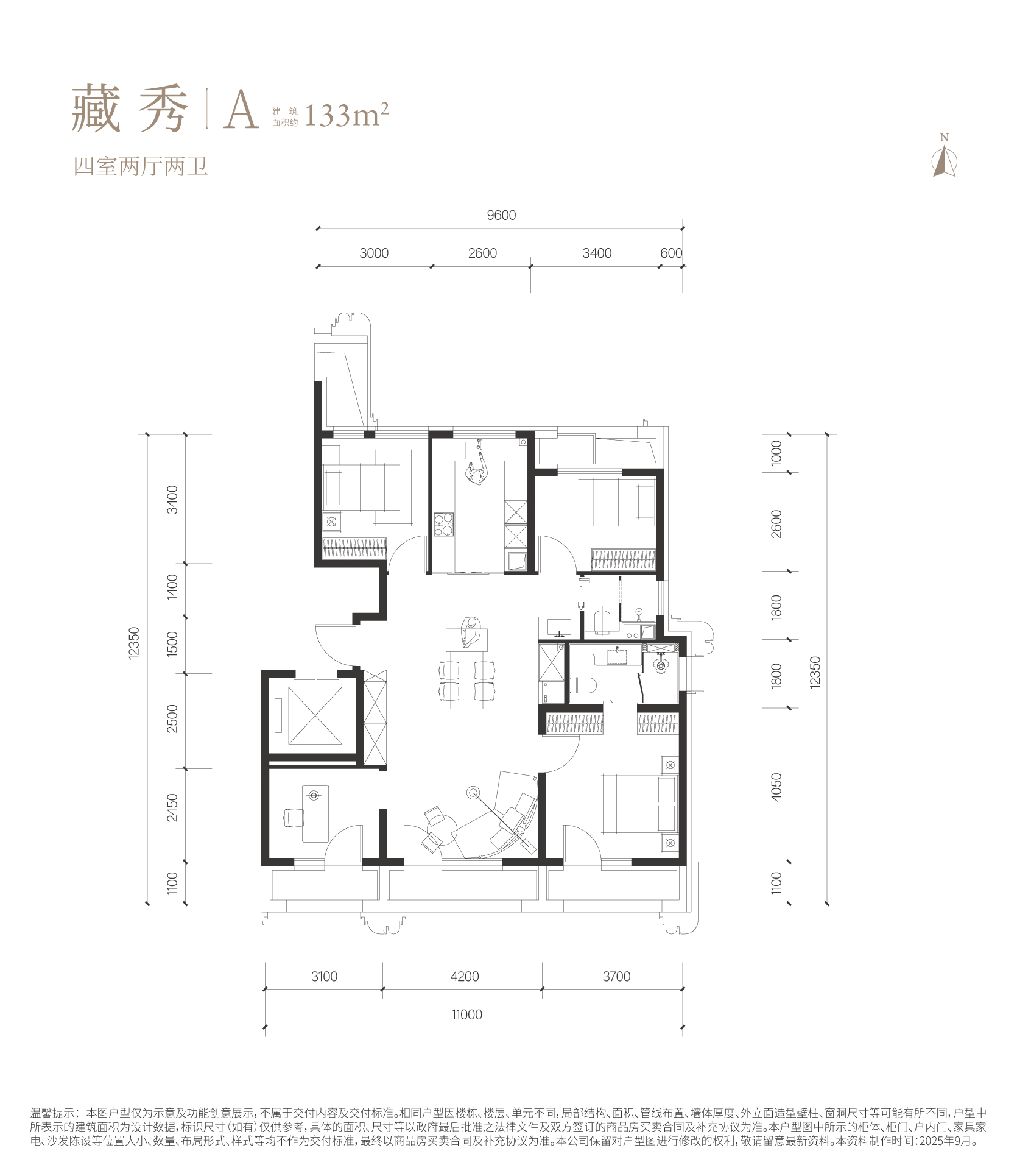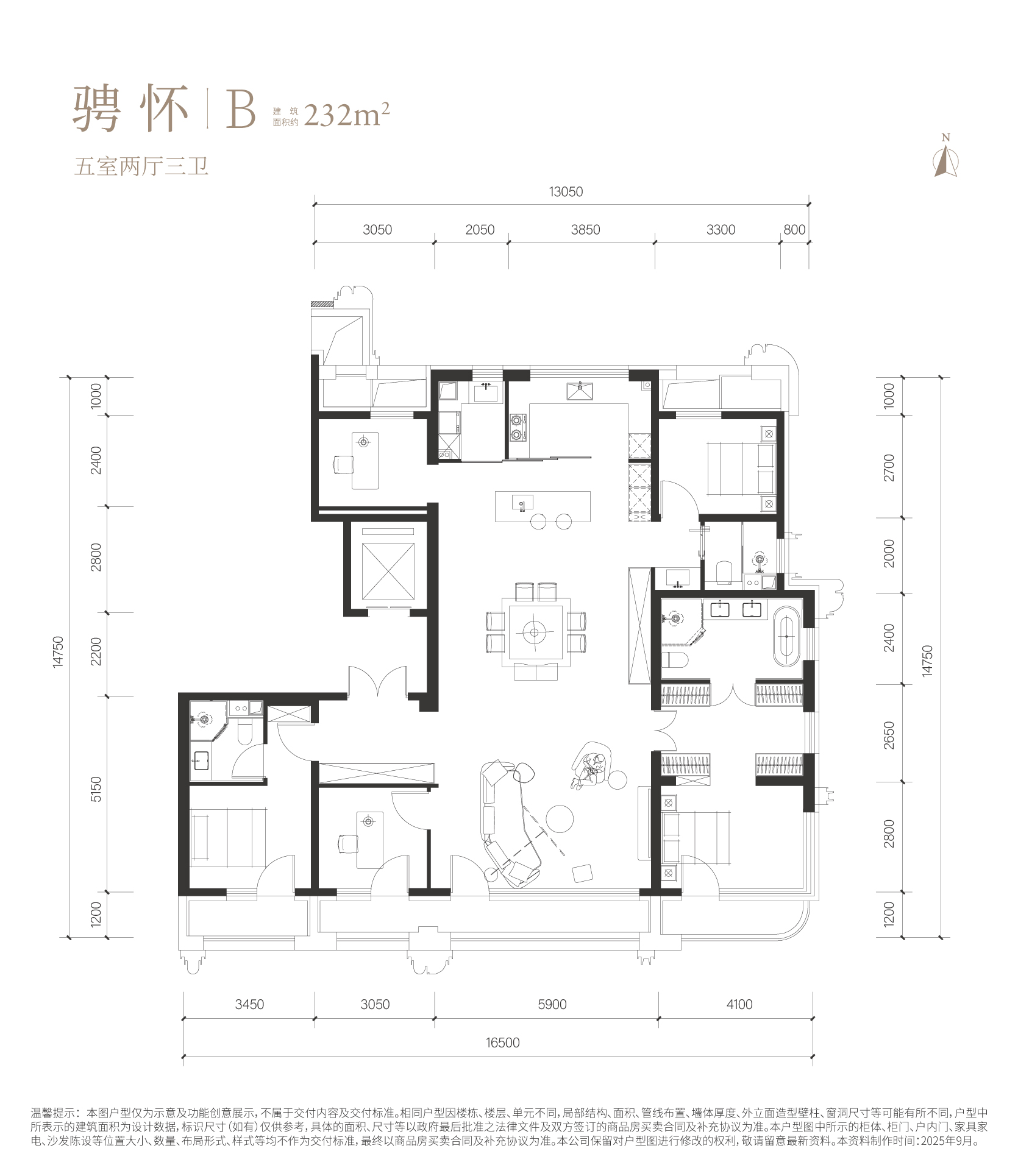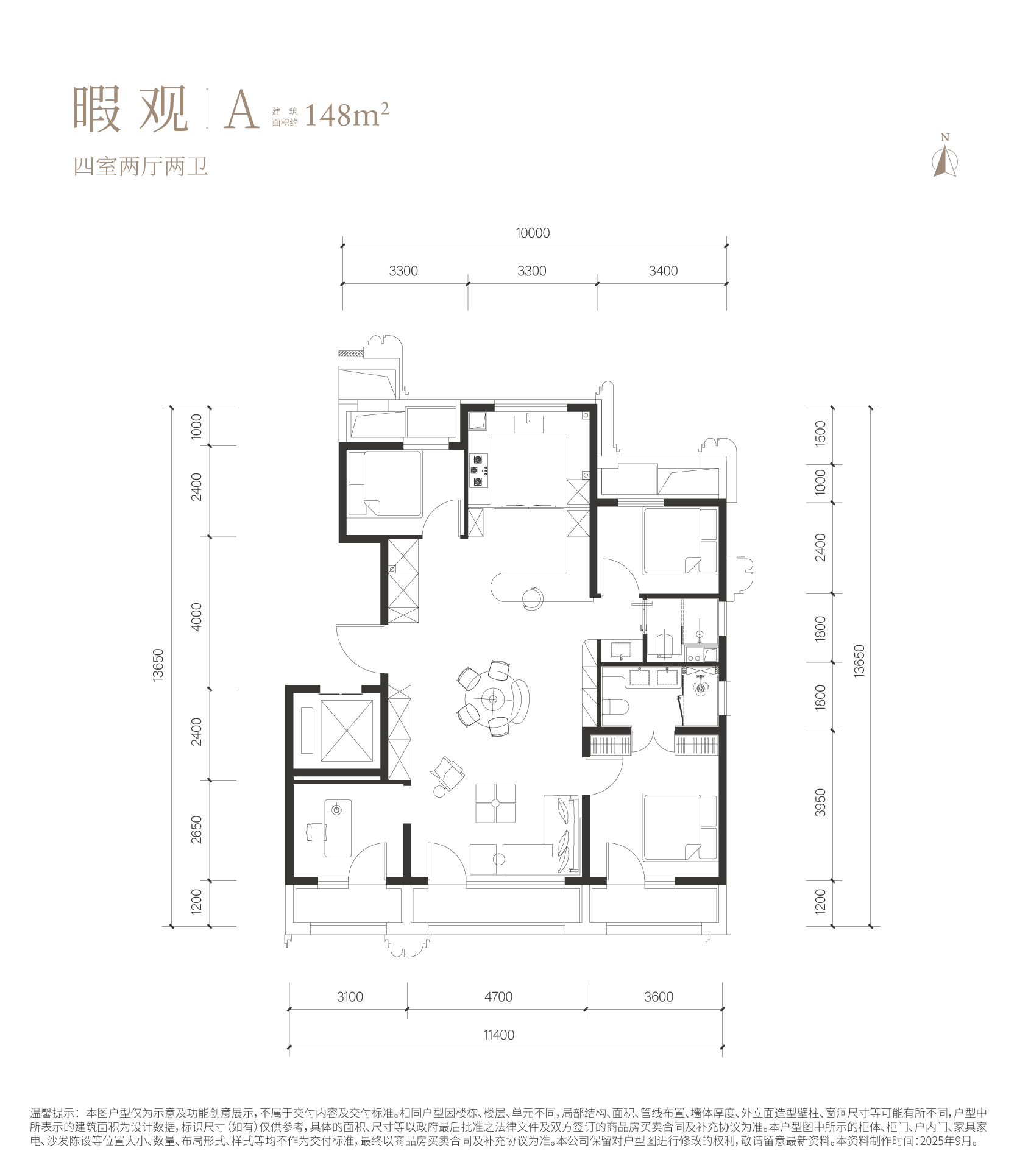 紫京宸园预计供应842套房源,最小户型为130㎡三居,主力145/165㎡,此外还有220/270㎡大平层,以及400㎡的空中别墅。