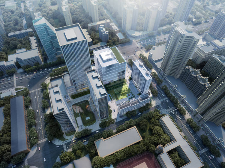 地块共规划三栋楼,两栋住宅,一栋办公,两栋住宅。