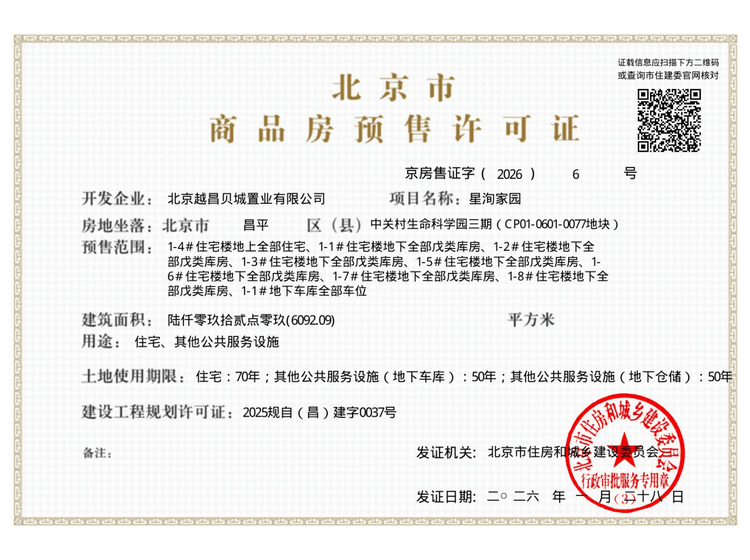 - 京房售证字(2026)6号 详情发证时间 2026-01-28绑定楼栋