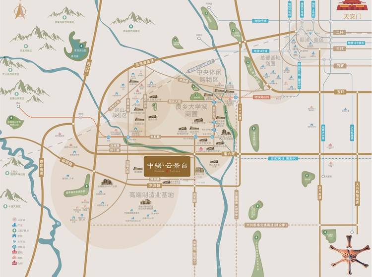 紧邻南六环良乡出口,自驾1.5公里约3分钟抵达项目,紧邻京港澳高速,自驾3公里约5分钟抵达项目