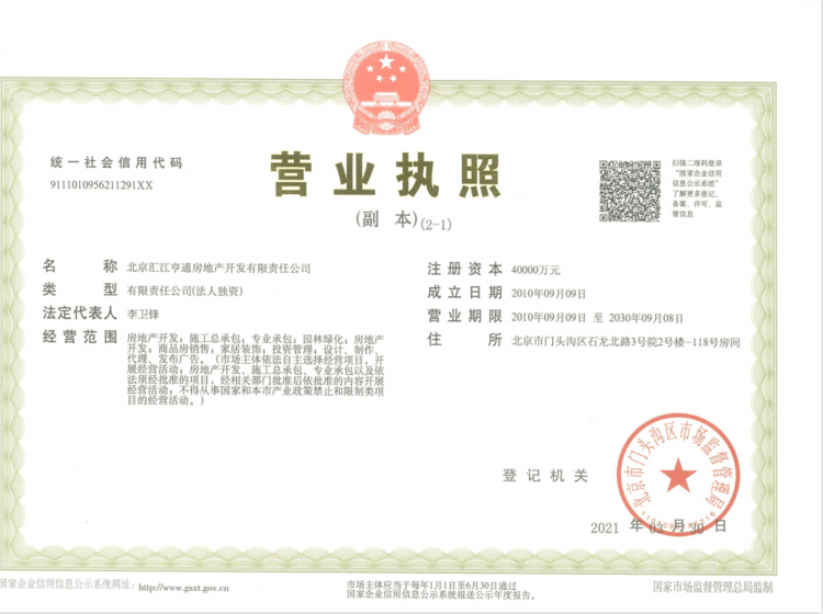 北京汇江亨通房地产开发有限责任公司