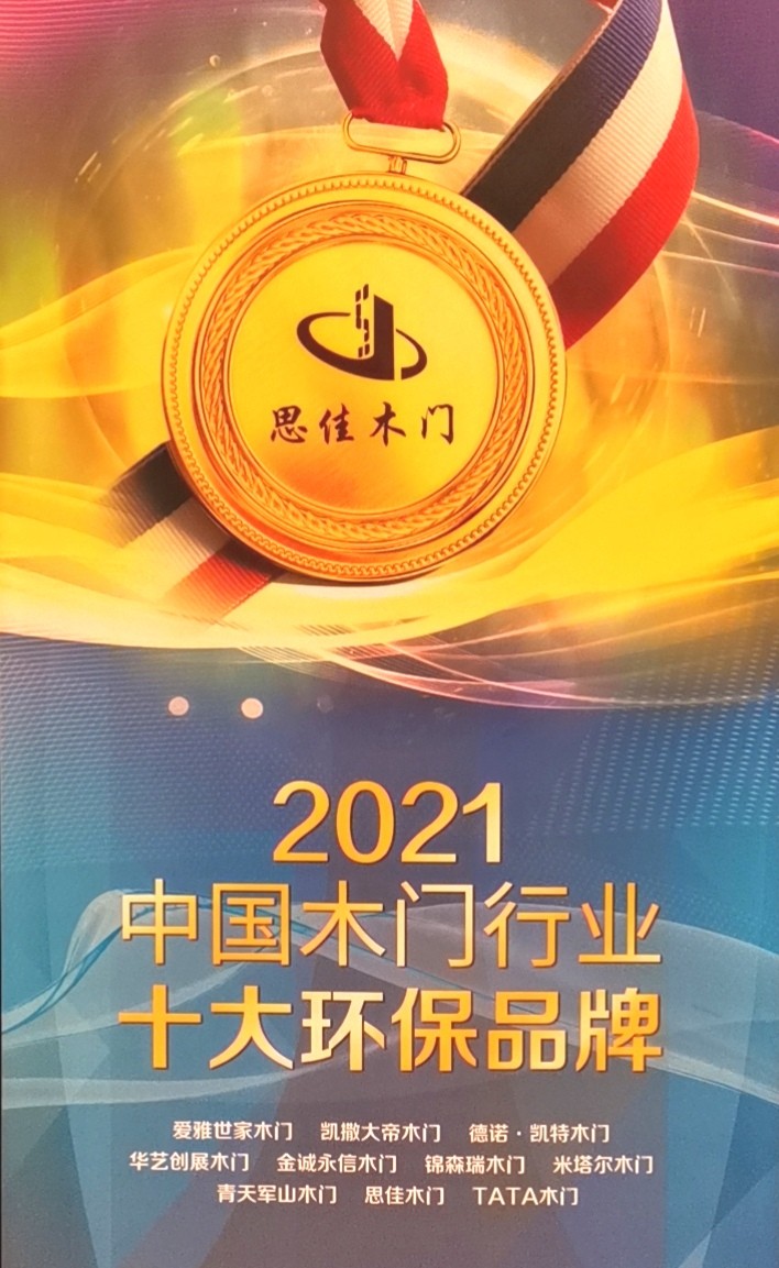 思佳木门荣获“2021中国木门行业十大环保品牌”荣誉