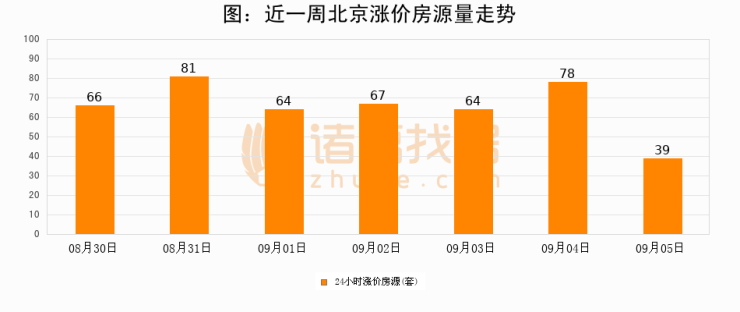 根据诸葛找房数据显示,北京24小时涨价房源量为39套,较09月04日减少39套,环比下降50%。与此同时,涨价房源占比小幅回落,对于购房者来说是一个入市窗口期,购房者可抓住时机入市。