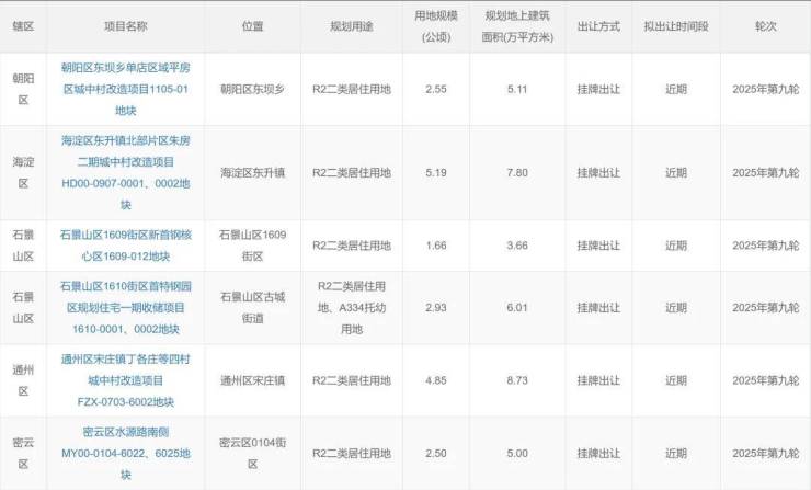 海淀区四季青板块、丰台区丽泽商务区周边、石景山区古城板块等地,都有计划推出新的住宅用地。