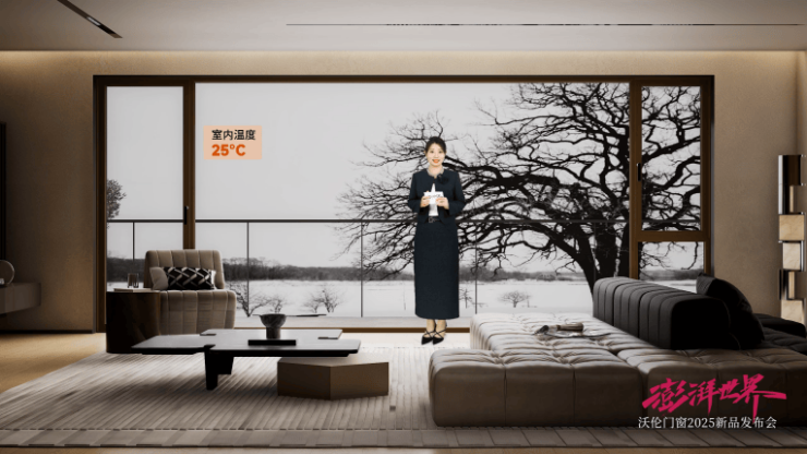 第二个痛点场景便是冰天雪地,通过AI模拟技术来到瑞士的一处居所,可以看到外面银装素裹,室内却温暖如春。在24年底,沃伦门窗全面落地「全自动4SG柔性暖边中空钢化玻璃生产线」的大背景下,沃伦门窗研发升级了隔热条和占据门窗大部分面积的4SG玻璃,为全球各地的用户筑起一道恒温防线,守护家中温度。