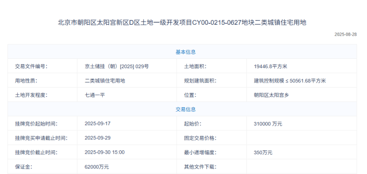 接下来太阳宫0627地块上周也正式挂牌上线了,地块整体控高80米按照目前好房子3.1米左右预估差不多25层左右,其中地块包含7400平米商业用地,扣除商业用地纯住宅的楼面价在7.18万左右,当年中建玖合府的楼面价在8.8万左右,目前区域内的二手房价格在10-13万之间,这个地块将来绝对是大面积的豪宅产品,另外地块还规定了地下空间要与17号线和10号线联通将来可以无缝对接地铁,公共交通出行体验相当的好,总之9月30日我们见分晓。