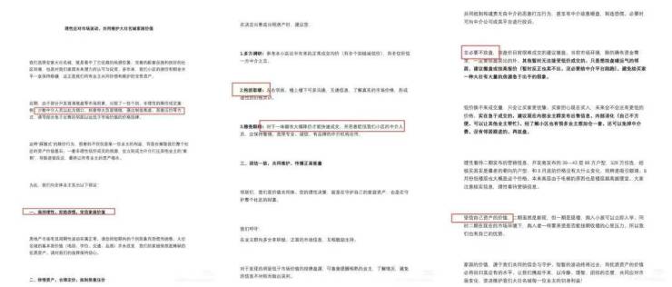 而倡议的一个核心内容在于“抱团取暖”,即建议业主定价前参考近半年正常成交价,而非极端低价;不急于卖房的业主撤盘或挂高价,避免造成“房源过剩”假象;急于成交的业主优先在业主群“内部消化”,既省中介费又能隐藏低价;同时提醒邻居勿信开发商营销噱头,强调一期现楼“即买即入学”的优势,优于二期存在的收楼风险。