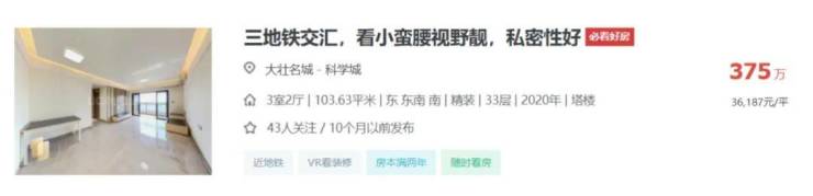 9月的一则成交数据,让广州黄埔科学城核心地段“网红盘”大壮名城刷新了价格底线:一套104平方米的二手房,以2.96万元/平方米单价成交,较高峰时跌幅超过50%。