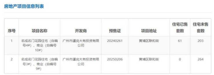 每经记者查阅广州阳光家缘数据了解到,截至10月14日,大壮名城二期(备案名:名成名门花园)住宅未售套数为467套,住宅已售套数为61套,去化率约11.6%。