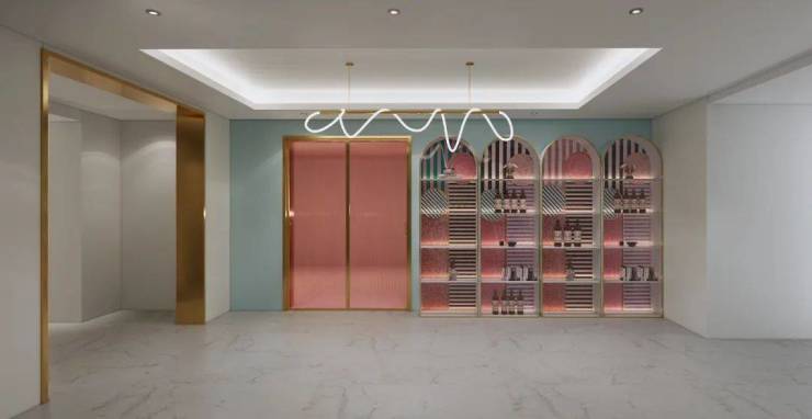 空间整体以代尔夫特蓝为主色调,辅以苍兰黄、庞贝红、爱马仕橙等明亮色块,以精确的比例在空间中撞击出热情奔放的氛围。