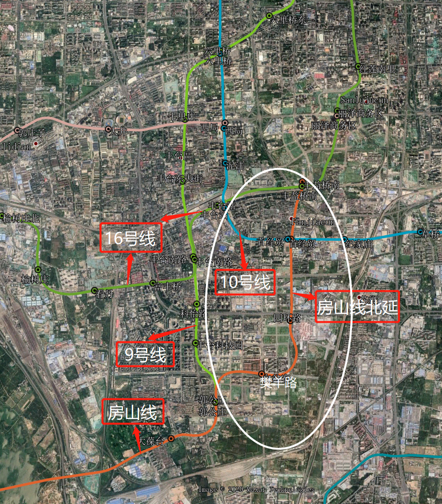 房山线北延线处于西南4环内外,4环本身极具地理位置优势,又是近两年五环内土拍最集中的位置,用豪宅遍地形容也不为过。