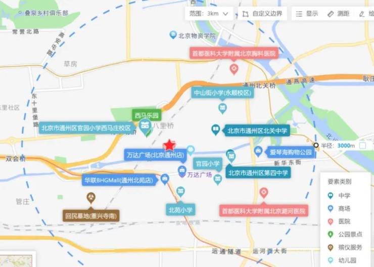 八里桥地块南临通惠河,东靠万达广场,西接永顺公园,堪称“通州小三元”;