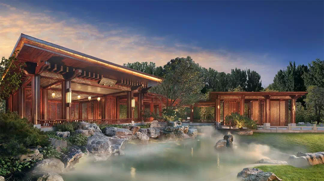 在超级富豪眼里,没有园林必定不足以称顶豪。园林不只是宅邸的景观配置,更是整个项目的灵魂精髓。西府大院通过叠山理水的造园手法,打造出北高南低、北山面水的风水地势,同时以皇家院落的造园理念规划出“一院九园”的空间格局。