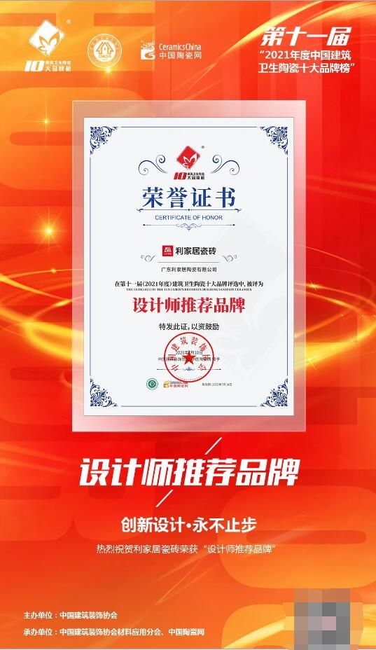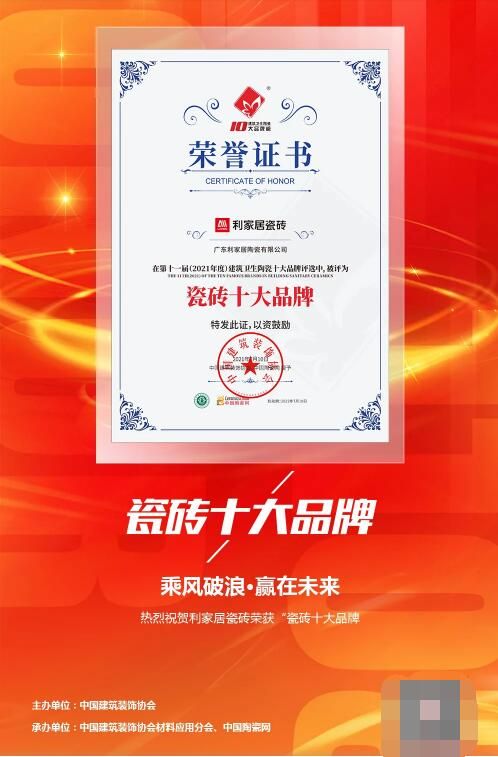 荣誉既是加冕,亦是鞭策。未来,利家居瓷砖继续开拓创新,紧跟市场和消费者的需求,致力为消费者创新理想家居生活。