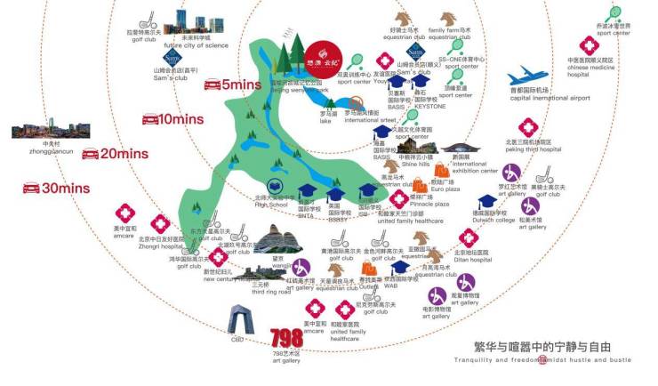 过去十年别墅项目始终在‘近配套’与‘高密度’间妥协,而真正的高端别墅社区是要和繁华保持适当的距离。懋源云紀地处后沙峪北侧,在交通上有效规避了嘈杂拥堵的路段,驱车5-10分钟可以直抵祥云小镇、欧陆广场,以及鼎石、贝赛思等超一流国际学校。