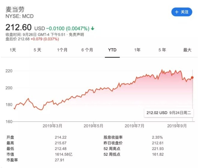 从股价看,麦当劳这一来低点约为170美元,高点则是达到了220美元。不到一年的时间内,股价增长了50美元。数字化转型带来的提振虽然不如星巴克那样显著,却也依旧亮眼。