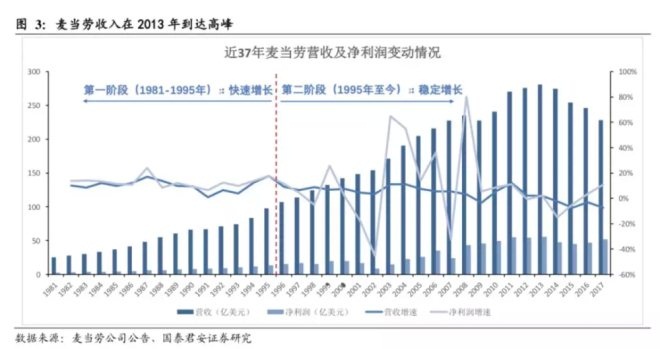 自从2013年之后,麦当劳每一年零售都处于下滑的状态。麦当劳实际上已经处于下行期,这也直接导致了“金拱门”的诞生。