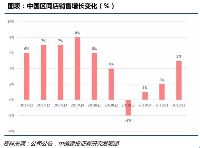 在2018年Q4,阿里和星巴克的全面战略合作真正落地展开之后,星巴克的同店销售额逐渐触底反弹。