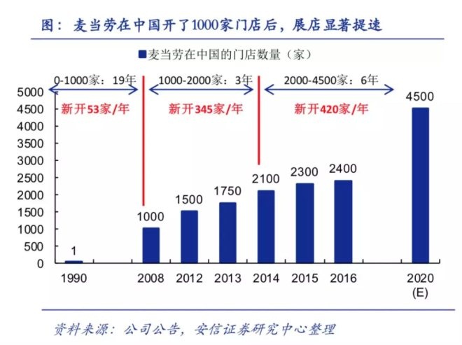 麦当劳计划在2020,在中国开通4500家门店,这个数量的增长远远超过过去几年。