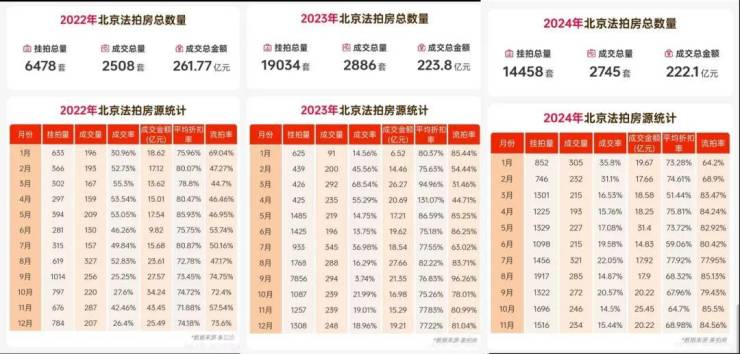 我查询了北京近三年法拍房的情况,目前只有商业、公寓、车位有银行直售业务,住宅暂无,而且查询近三年北京法拍房数量也证明,北京法拍房峰值出现在2023年,之后虽然增加,但是较峰值已经回落,没有爆表。