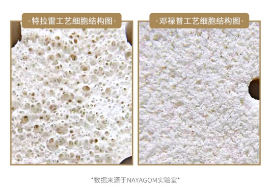 楠伢宫的乳胶枕使用特拉雷工艺物理发泡,因为充入二氧化碳作为发泡中的凝胶剂,形成了蜂窝状的开孔结构,这些开孔结构使得楠伢宫的乳胶寝具具有超强的透气性和吸湿性,可以有效避免细菌的滋生和螨虫的生长,起到防螨虫的作用。特拉雷工艺是传统工艺的一个优化,将传统工艺的化学发泡替换成健康的物理发泡,所以在透气性和排湿性上做到了更好的效果。