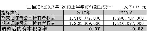 2018上半年三盛控股所有者权益12.9亿元,比2017年13.16亿元下降约19%,调整后的资本累积率由2017年的0.07减少至2018上半年的-0.02,大于行业最小值-0.18。母公司累积资本减少,股东偿债的保证变弱。