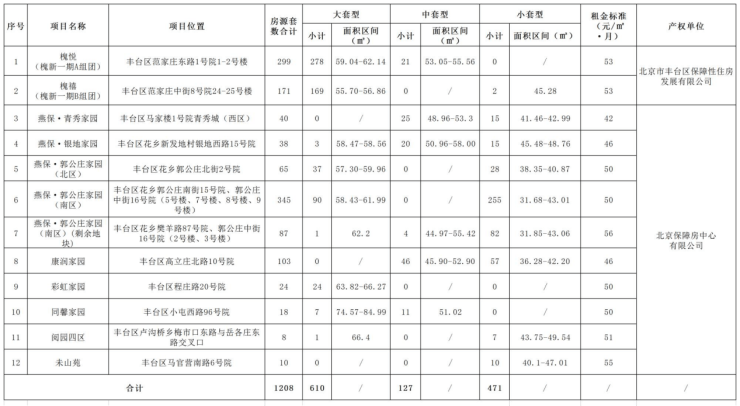 央广网北京9月24日消息(记者门庭婷)近日,北京市丰台区住房保障事务中心发布丰台区2025年第二批公共租赁住房快速配租公告。本次配租的公共租赁住房项目共12个,房源共计1208套。其中,大套型610套,中套型127套,小套型471套。