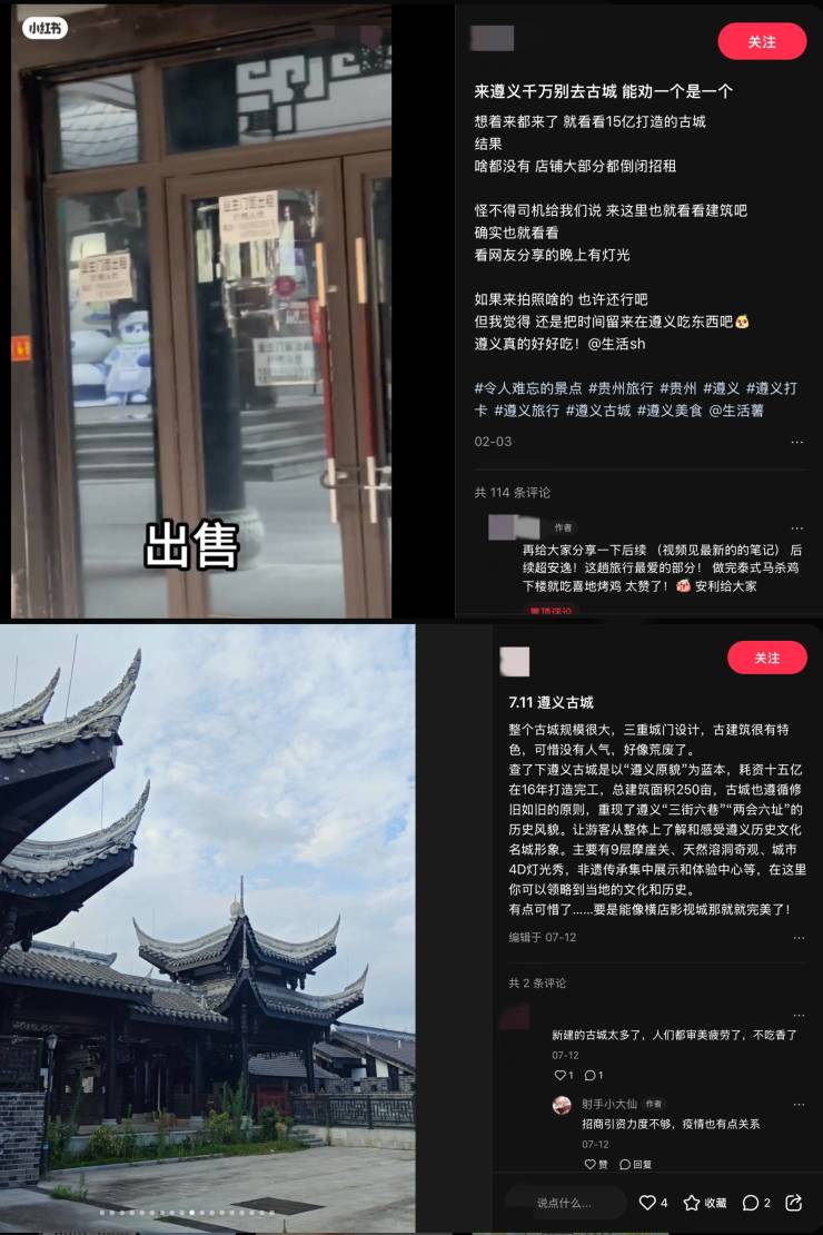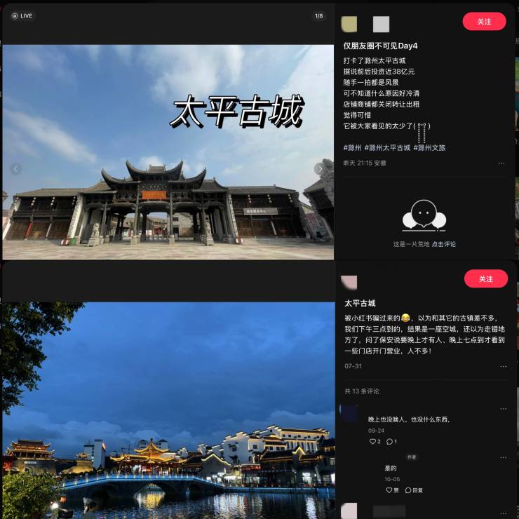 社交平台上,也有网友发帖吐槽其他门可罗雀的古城古镇。