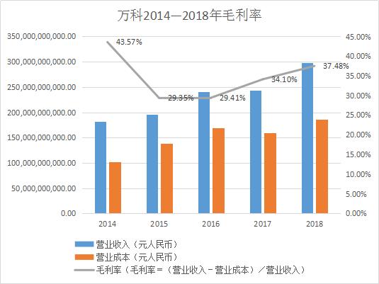 2018年,万科全年实现营业收入2976.8亿元,净利润492.7亿元,同比分别增长22.6%、32.4%,净利润增速继续高于营业收入增速。2016起,营业收入、净利润三年间的复合增长率分别为15%、23.8%。